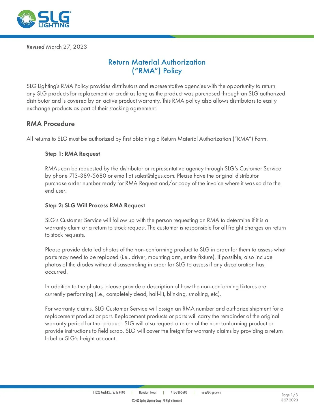 SLG RMA Policy